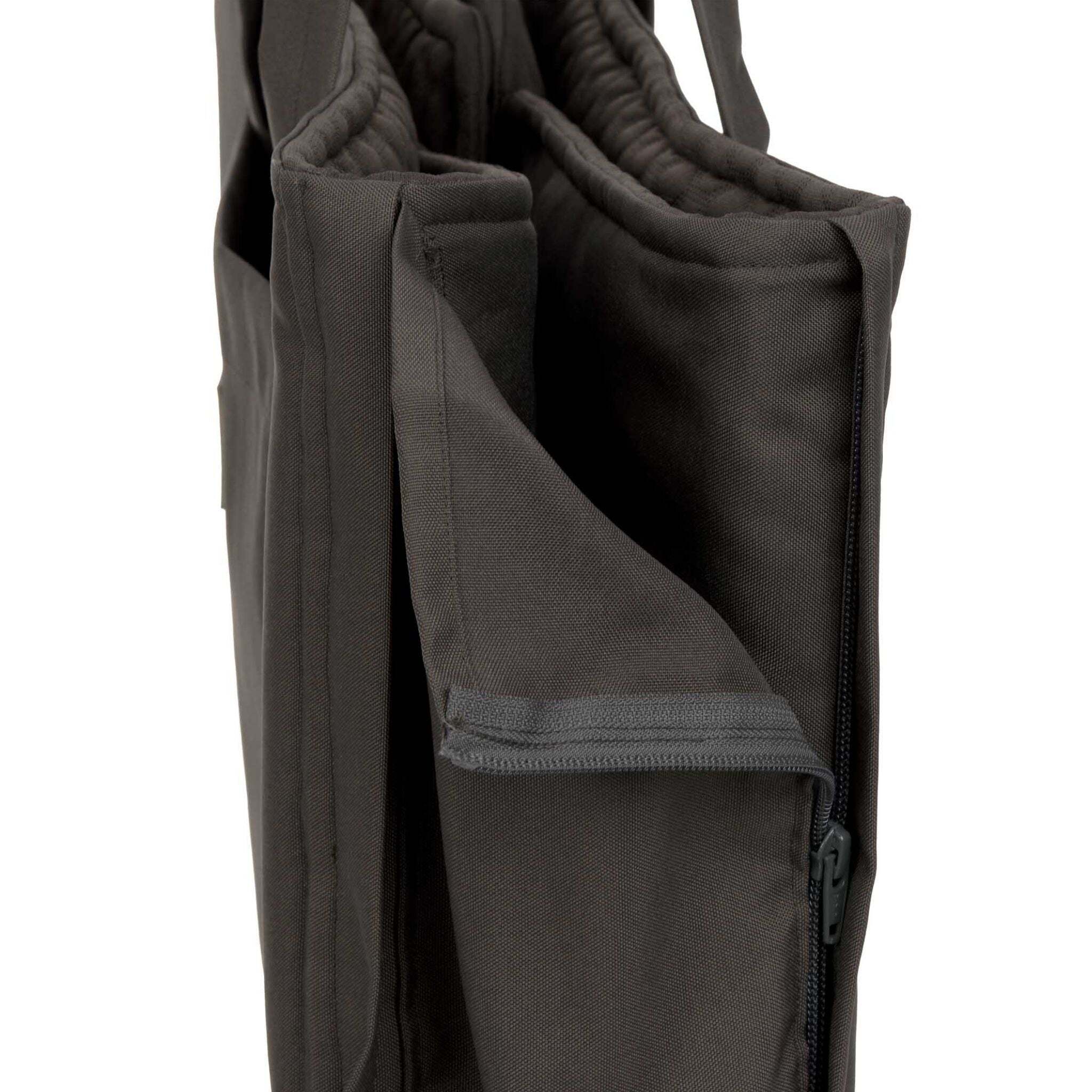 簡単変形 : ジッパー操作でバッグからマットへ、マットからバッグへとスマートに切り替えが可能 。