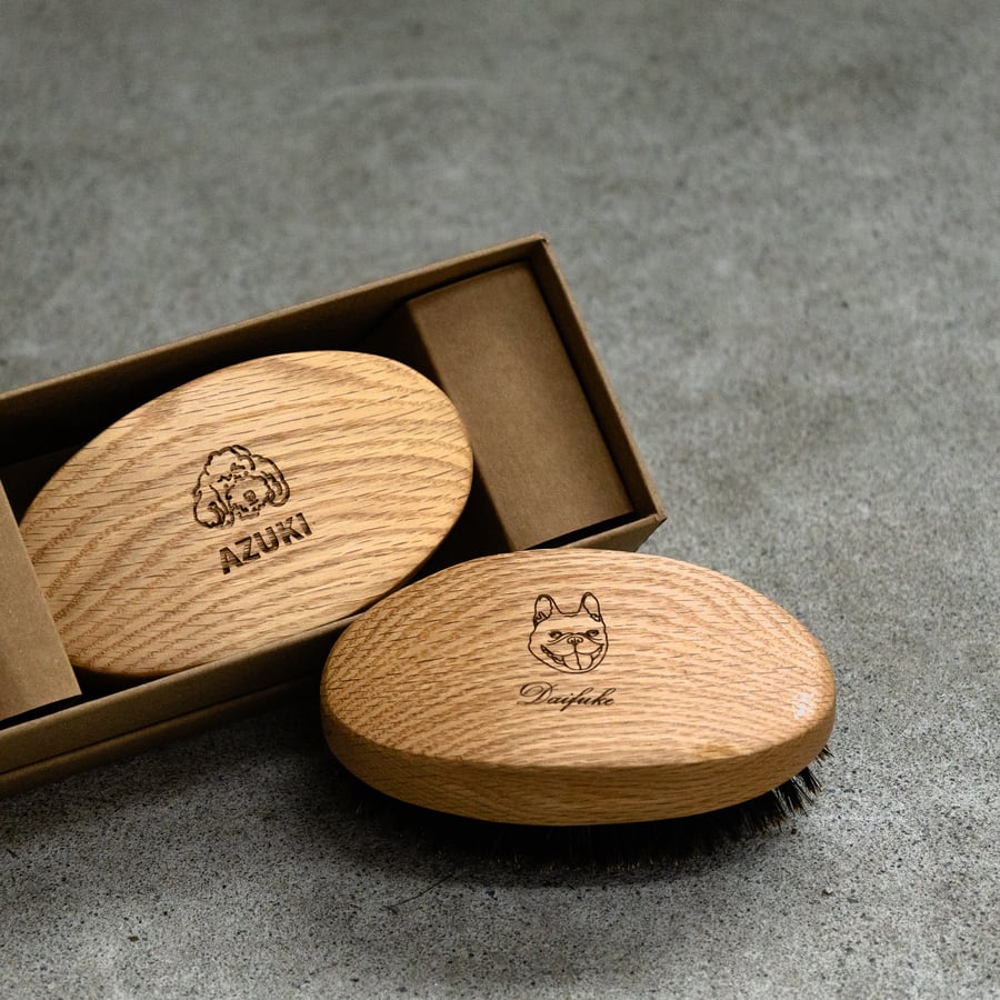 【木製 ペットブラシ オークウッド BOAR】レーザー加工